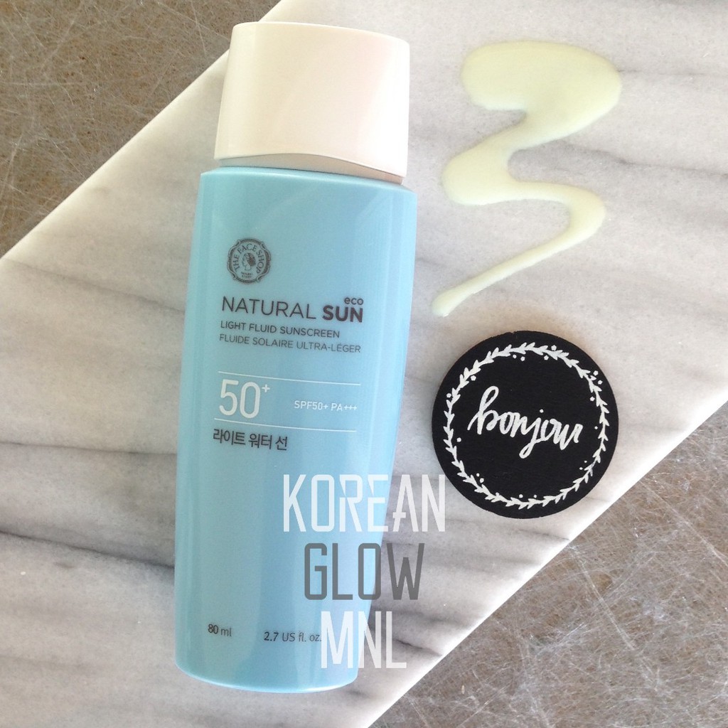 The face shop natural sun eco light fluid sunscreen ingredients. See full analysis here. 225 x 125 x 475 inches. THE FACE SHOP Eco Natural Sun Light Fluid Sunscreen contains 27 ingredients.